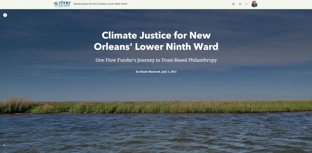 In my time with the national nonprofit, River Network, I was able to work with community leaders around the country. Arthur Johnson, the CEO of the Lower Ninth Ward Center for Sustainable Engagement and Development, was one leader that I worked with in several different circles. We are still in touch today. In March of 2023, I visited the Lower Ninth Ward of New Orleans and wrote a story about the work that Arthur is doing there in collaboration with his community. It was one of the most impactful trips that I have taken in my life.